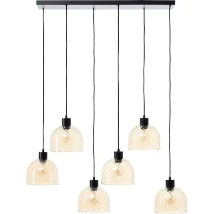 Beschreibung Brilliant Casto Pendelleuchte Glas Pendelleuchte Metall Schwarz Beige | Geeignet für 6x E27