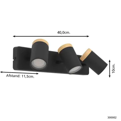 Beschreibung Eglo Deckenleuchte Consuma Schwarz, Braun | Geeignet für 3x GU10