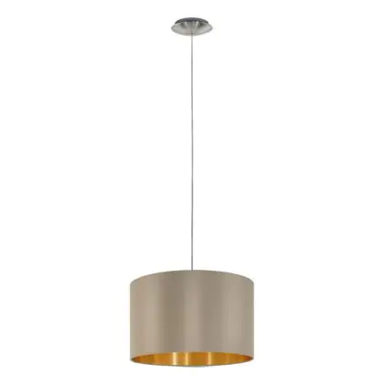 Die Eglo Pendelleuchte Maserlo Stahl Satin-Nickel | Geeignet für E27 sorgt für eine angenehme Ausleuchtung und punktet durch modernes Design. Diese Leuchte ist speziell zur Montage an der Decke vorgesehen.