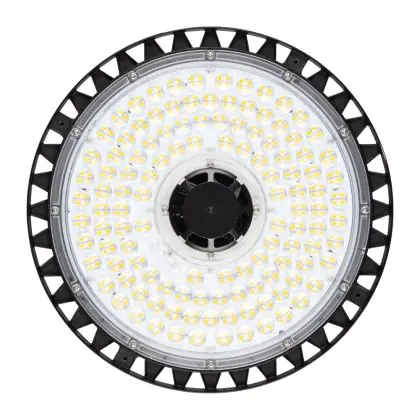 Diese LED-Hallenleuchte punktet mit einer Leuchtkraft von 22.000 Lumen (lm) und strahlt damit besonders viel Helligkeit aus. Die ebenfalls hohe Lichtausbeute von 140 lm/W zeugt von einer guten Effizienz. Wenn Sie die Stärke dieses Lichts mit dem Ihrer konventionellen Lichtlösung vergleichen möchten, empfehlen wir Ihnen einen Blick in unsere praktische Tabelle Lumen in Watt umrechnen.