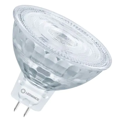 Die Ledvance Superior LED Reflektor GU5.3 MR16 5W 350lm 36D - 940 Kaltweiß | Höchste Farbwiedergabe - Dimmbar - Ersatz Für 35W ist eine effiziente GU5.3 LED-Lampe und der perfekte Ersatz für Ihre konventionelle Halogenlampe mit 35W und einem GU5.3-Sockel, bei dem die beiden Stifte einen Abstand von 5,3 mm zueinander haben. Die Abkürzung MR16 zeigt Ihnen, dass der Reflektor einen Durchmesser von 5 cm hat. Zudem strahlt das Produkt Licht in der Farbtemperatur 4000K - Kaltweiß aus und punktet durch eine lange Lebensdauer.