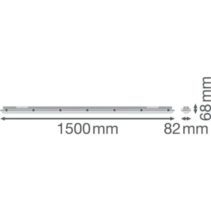 Beschreibung Ledvance Wasserdicht Deckenleuchte Feuchtigkeitsdicht High Efficiency PC Grau 49W 7800lm - 840 Kaltweiß | 150cm - Dali Dimmbar- Ersatz Für 2x58W