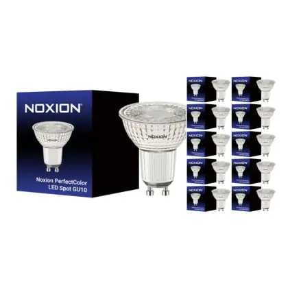 Die Mehrfachpackung 10x Noxion PerfectColor Led-Spot GU10 PAR16 3.8W 345lm 36D - 922-927 Dim To Warm | Höchste Farbwiedergabe - Dimmbar - Ersatz Für 50W ist eine effiziente GU5.3 LED-Lampe. Das Produkt der Marke Noxion ist der perfekte Ersatz für Ihre konventionelle Halogenlampe mit 43W und einem GU5.3-Sockel, bei dem die beiden Stifte einen Abstand von 5,3 mm zueinander haben. Die Abkürzung MR16 zeigt Ihnen, dass der Reflektor einen Durchmesser von 5 cm hat. Zudem strahlt das Produkt Licht in der Farbtemperatur 2700K - Extra Warmweiß aus und punktet durch eine lange Lebensdauer.