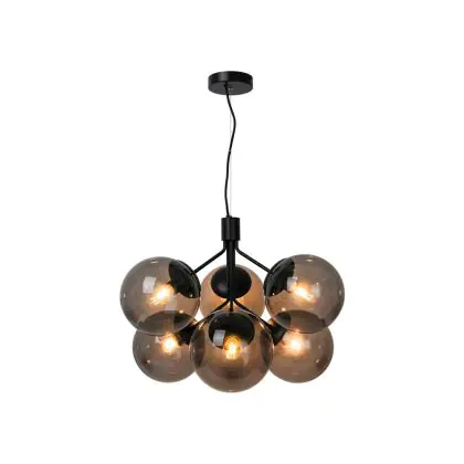 Bei der schwarzen Pendelleuchte Ivona handelt es sich um eine Neuinterpretation eines klassischen Kronleuchters, wobei das traditionelle Design durch einen etwas organischeren und moderneren Look akzentuiert wird. Mit 6 Glaskugeln strahlt Ivona ein tolles Licht aus, das für einen modernen und extravaganten Stil sorgt. Das Glas dieser Leuchte ist mundgeblasen und handgefertigt. Aufgrund dieses einzigartigen Verfahrens können im Glas Luftblasen entstehen und die Dicke des Glases kann ebenfalls variieren. Dies verleiht dem Glas seinen einzigartigen Charakter und sein lebendiges Erscheinungsbild.