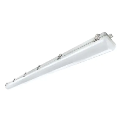 Die LED-Feuchtraumleuchte mit integriertem Philips-LED-Treiber hat eine Länge von 150 cm. Das Noxion-Produkt ersetzt eine herkömmliche Leuchte à 58 Watt. Selbst verbraucht es nur 33 Watt – eine schnelle Amortisation ist damit gewährleistet. Diese LED hat mit einem Wert von 4.000 K eine kaltweiße Farbtemperatur. Sie ist IP66- und IK08-klassifiziert und kann als Notfallbeleuchtung (1 Stunde) eingesetzt werden.