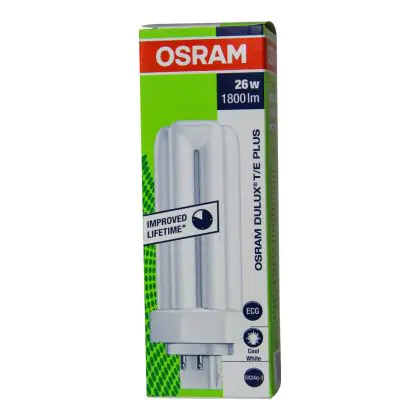 Die Osram Dulux T/E Plus 26W - 840 Kaltweiß | 4-Pins ist eine Kompaktleuchtstofflampe von Osram. Das Produkt mit 4 Pins strahlt Licht in der Farbtemperatur 4000K - Kaltweiß aus und punktet durch eine lange Lebensdauer.