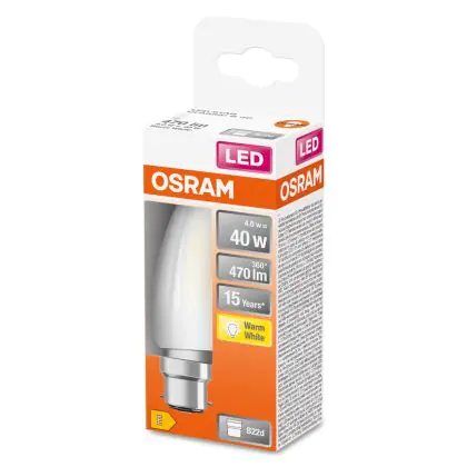 Osram LED B22D Kerze Fadenlampe Matt 4W 470lm - 827 Extra Warmweiß | Ersatz für 40W
