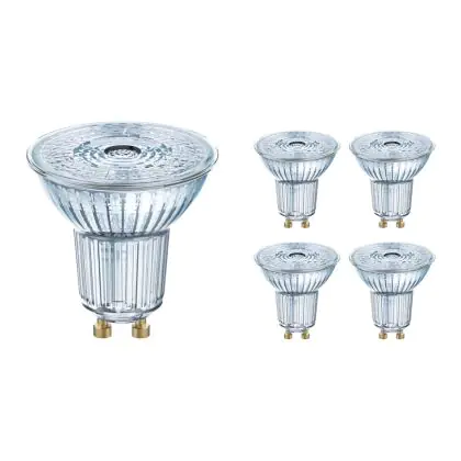 Die Osram Parathom LED-Spot GU10 PAR16 4.3W 350lm 36D - 830 Warmweiß | Ersatz für 50W (5 Stck.) ist eine effiziente GU10 LED-Lampe und der perfekte Ersatz für Ihre konventionelle Halogenlampe mit 50W und einem GU10-Sockel, bei welchem die zwei Stifte einen Abstand von 10 mm zueinander haben. Zudem strahlt das Produkt Licht in der Farbtemperatur 3000K - Warmweiß aus und punktet durch eine lange Lebensdauer.