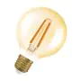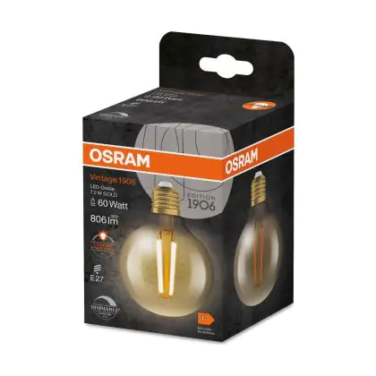 Die Osram Vintage 1906 LED E27 Globe Fadenlampe Gold 7.2W 806lm - 824 Extra Warmweiß | Ersatz Für 60W ist eine effiziente E27 LED-Lampe mit Retrodesign und der perfekte Ersatz für Ihre konventionellen 60W Lampen mit E27. Zudem strahlt sie Licht in der Farbtemperatur 2400K - Extra Warmweiß aus und punktet durch eine lange Lebensdauer.