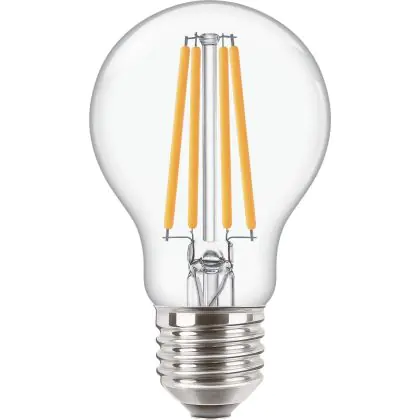 Die Philips Corepro LED Glühbirne E27 Birne Klar 10.5W 1521lm - 827 Extra Warmweiß | Ersatz für 100W ist eine effiziente E27 LED-Lampe und der perfekte Ersatz für Ihre konventionellen 100W Lampen mit E27-Sockel. Zudem strahlt sie Licht in der Farbtemperatur 2700K - Extra Warmweiß aus und punktet durch eine lange Lebensdauer.