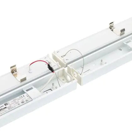 Bei dem Produkt “Philips LED Deckenleuchte CoreLine Weiß 45.5W 6400lm - 865 Tageslichtweiß | 120cm - Dimmbar, Interact - Ersatz Für 2x36W” handelt es sich um einen effizienten LED-Deckenspot der Marke Philips, welcher Licht in der Farbtemperatur 6500K - Tageslichtweiß ausstrahlt und durch eine lange Lebensdauer punktet. Das Downlight ist recycelbar und umweltfreundlich, denn es enthält kein Quecksilber.